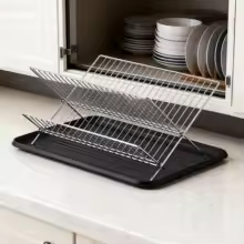 Organize and dry your tableware easily with this collapsible dish drying rack. Designed for modern kitchens, it saves space while keeping dishes clean and neatly arranged.